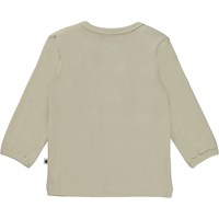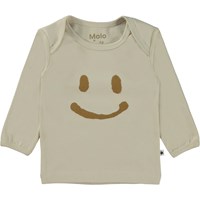 Elan er en beige babybluse med print af en smiley på fronten.
