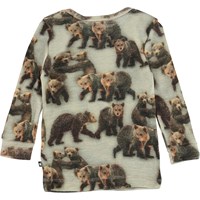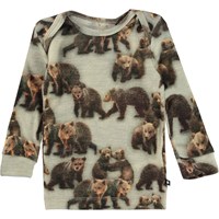 Eli er en grå babybluse med print af søde bjørne. Blusen er i 100% Merino uld og har lange ærmer.