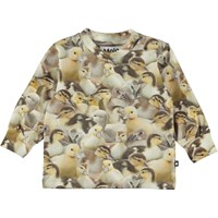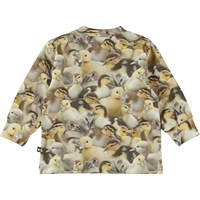 Eloy er en babybluse med print af små søde og bløde ællinger i gule og brune nuancer. Eloy har en dobbelt knappelukning på den ene skulder, som gør det nemt at få blusen af og på.