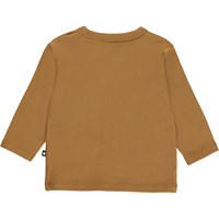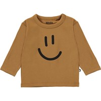 Elvo er en brun babybluse med print af en smiley på fronten.
