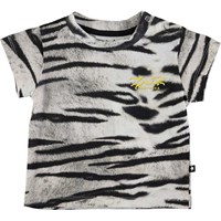 Rasmus er en kortærmet baby t-shirt i økologisk bomuld med sort og hvidt tigerprint. T-shirten har en praktisk knappelukning på den ene skulder og på brystet er påtrykt et gult Panthera logo. Denne vare er en del af Molo's capsule kollektion lavet i samarbejde med Panthera som er den eneste organisation i verden, der udelukkende er dedikeret til bevarelsen af verdens 40 vilde katteracer og deres økosystemer.
