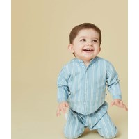 Eno er en fin, let skjorte i lyseblå med fine hvide striber, kinakrave og knaplukning foran. Skjorten er lavet af 100% økologisk bomuld. Kombiner skjorten med matchende bukser.