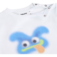 Klassisk lyseblå t-shirt med sjovt print i økologisk bomuld til de mindste. Har løs pasform, rund hals med ribkant og knaplukning på venstre skulder for nem af- og påklædning.