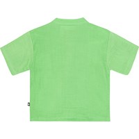 Lysegrøn t-shirt skjorte til de mindste i økologisk bomuld. Skjorten har kinakrave, stolpelukning med tre hvide knapper samt en løs pasform der gør den behagelig at have på og nem at komme i. Skjorten har et lille smilende ansigt broderet på brystet i samme farve. Kombiner med matchende bukser i samme farve samt materiale og få et komplet sæt.