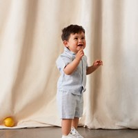 Sød kortærmet babyskjorte i lyseblå. Kombiner skjorten med matchende shorts for det perfekte sommeroutfit til den lille.
