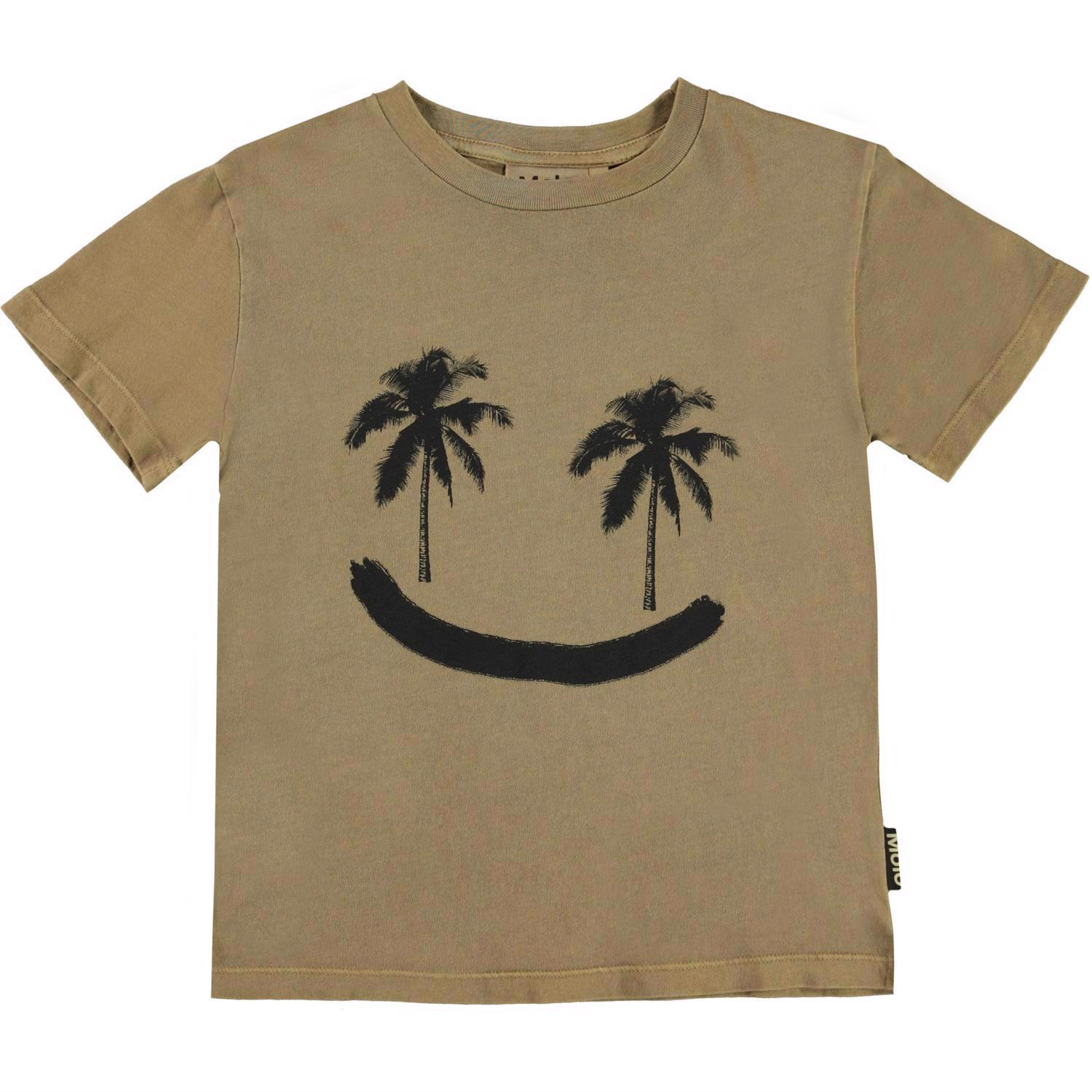 Rame er en lysebrun basic t-shirt med et happy palmeprint på maven. Denne Molo vare er fremstillet i certificeret økologisk bomuld.