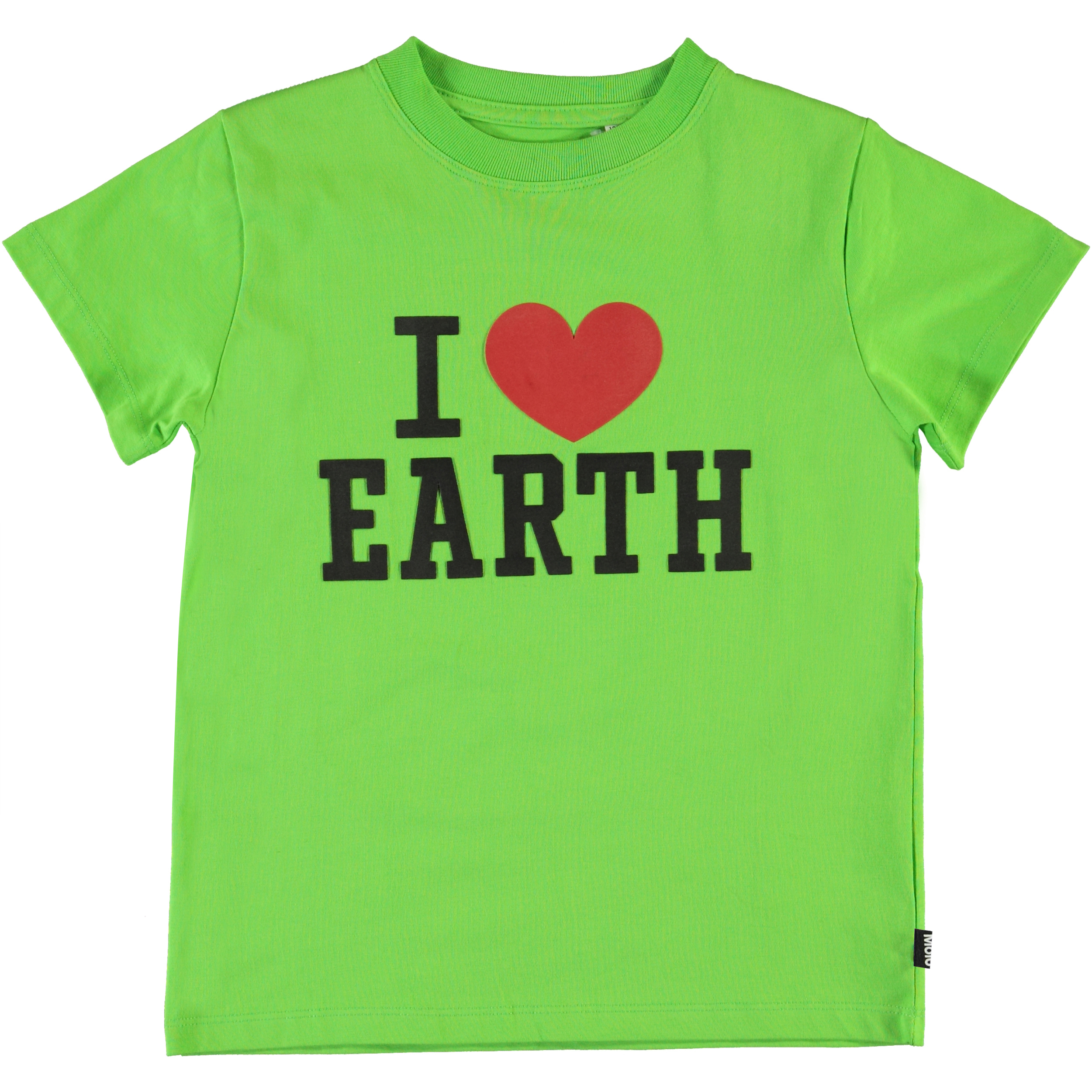 Reeve er en t-shirt i grøn med "I Love Earth" på fronten.