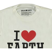 Reeve er en hvid t-shirt med "I Love Earth" på fronten.