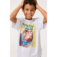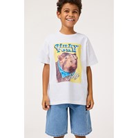 Hvid t-shirt i blødt økologisk bomuld med korte ærmer og ribkant i halsen. T-shirten har en løs pasform samt et frontprint af en cool gris og teksten 'Oinky Tonk'.