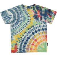 Riley er oversized unisex t-shirt med flot farverigt batikprint. T-shirten har korte ærmer og en rund halsudskæring.