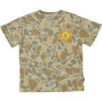 Riley er oversized unisex t-shirt i beige med et flot mønster af sand formationer. T-shirten har korte ærmer og en rund halsudskæring.