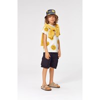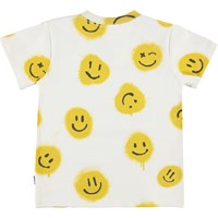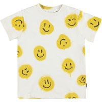 Road er en hvid t-shirt med all over print af gule, spraymalede smileys.