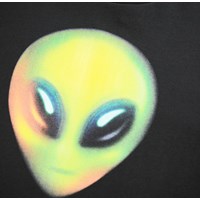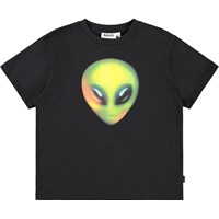 Sort t-shirt i blødt økologisk bomuld med korte ærmer og ribkant i halsen. T-shirten har en oversize pasform med et neon print af aliens ansigt.