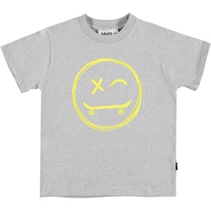 Roxo er en gråmeleret basic t-shirt med en gul skateboard smiley på maven.
