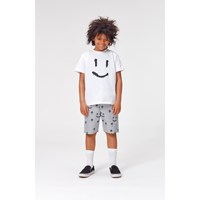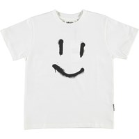 Roxo er en hvid basic t-shirt med en stor smiley på maven.