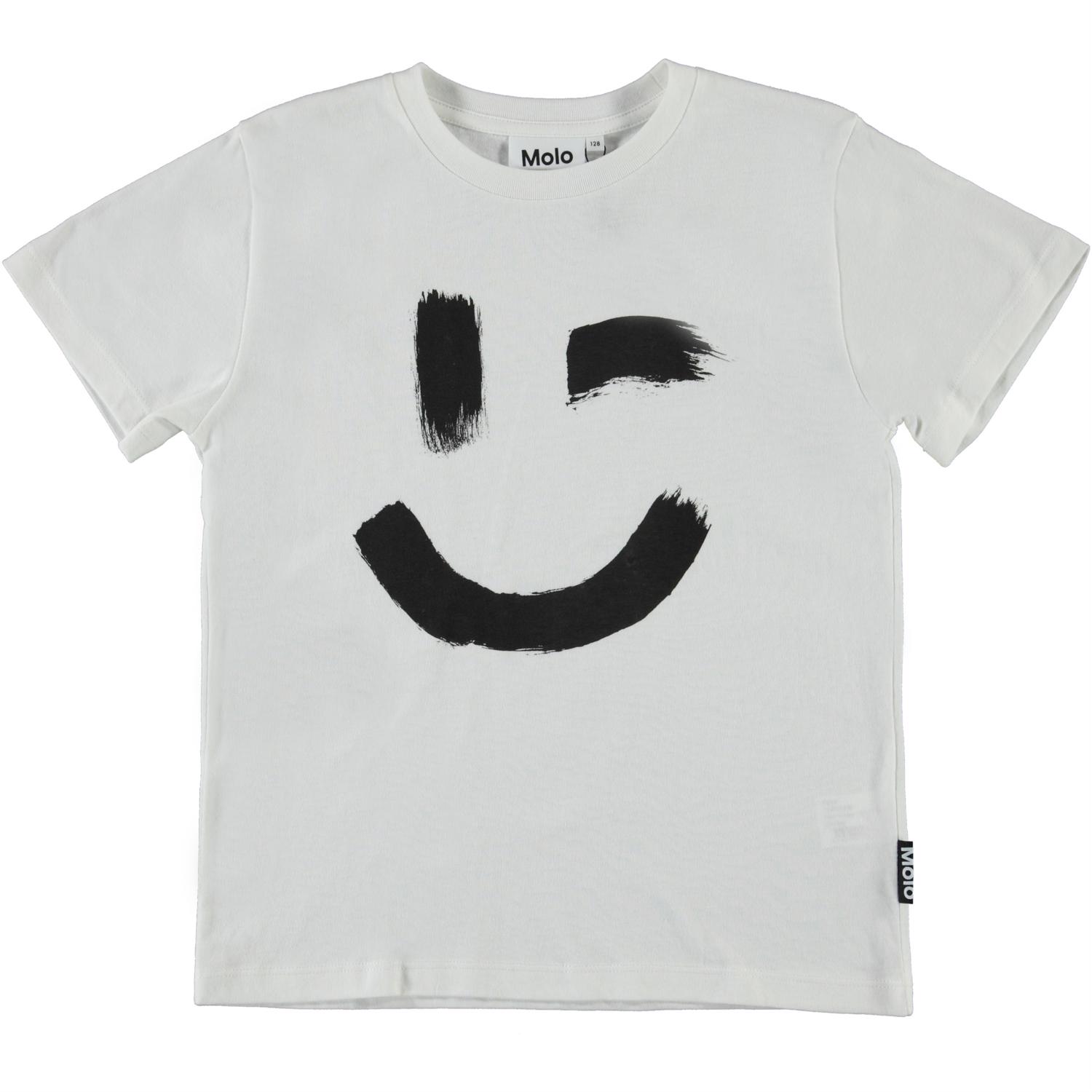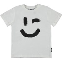 Roxo er en hvid unisex t-shirt med print af smiley på fronten. T-shirten har rund halsudskæring.