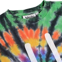 Multifarvet tie-dye t-shirt i blødt økologisk bomuld med korte ærmer og ribkant i halsen. T-shirten har en løs pasform med et print af et smilende ansigt.