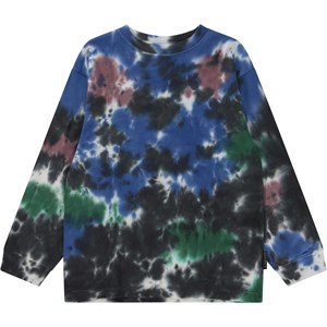 Langærmet t-shirt med tie-dye i blå, grønne og sorte nuancer. Denne langærmede t-shirt er fremstillet i 100% bomuld, har rund hals, ribkant ved ærmer og hals, samt et loose fit.