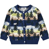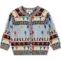 Multifarvet strikcardigan i bomuld/uld til de mindste. Cardiganen har en rund halsudskæring med ribkant samt ribkanter ved hofte og ærmer. Den har en knaplukning langs fronten og et allover mønster med balloner og andre sjove figurer.