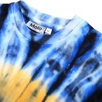 Multifarvet tie-dye sweater til de mindste i økologisk bomuldsvelour. Sweateren har ribkant ved hofte og ærmer samt en rund halsudskæring med to trykknapper i nakken, der gør den nem at få af og på.