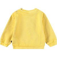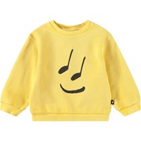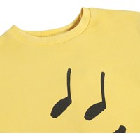 Gul sweatshirt med musikprint til de mindste i økologisk bomuld med ribkanter.