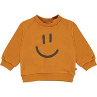 Disc er en orange baby sweatshirt med print af smiley på fronten. Sweatshirten knappes i nakkes bagpå. Kombiner blusen med de matchende babybukser.