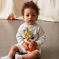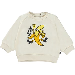 Disc er en råhvid baby sweatshirt med print af en sjov banan. Sweatshirten knappes i nakken bagpå. Kombiner blusen med de matchende babybukser.
