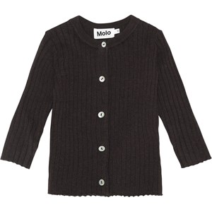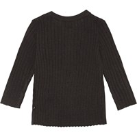 Georgette er en flot ribstrikket baby cardigan med cashmere i brun. Cardiganen har smukke perlemorsknapper hele vejen ned Kombinere med matchende ribstrikkede bukser.