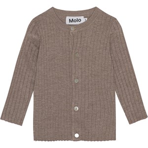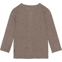 Lysebrun cardigan i rib finstrik til de mindste. Denne cardigan er fremstillet i en blød cashmere/viskose blanding, har rund halsudskæring, lange ærmer, samt små knapper med perlemors finish med langs fronten. Match evt. denne cardigan med bukserne, Shadow, i samme kvalitet for det perfekte sæt, der er både blødt og varmt.