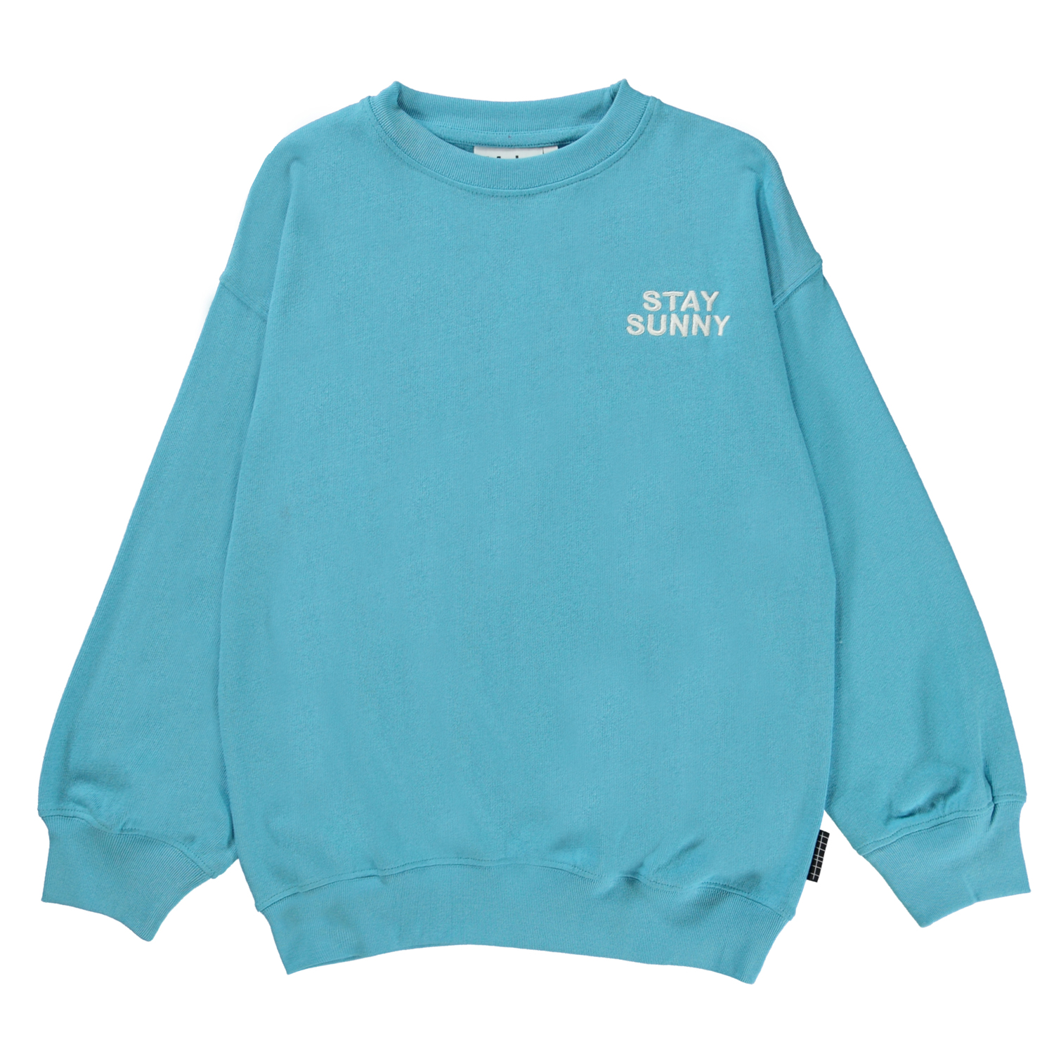 Mar er en blå unisex sweatshirt med teksten 'Stay sunny' broderet på brystet. Sweatshirten har en god længde. Kombiner sweatshirten med matchende shorts.