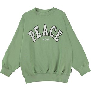 Mar er en grøn unisex sweatshirt med teksten 'Peace now' broderet' på brystet. Sweatshirten har en god længde.