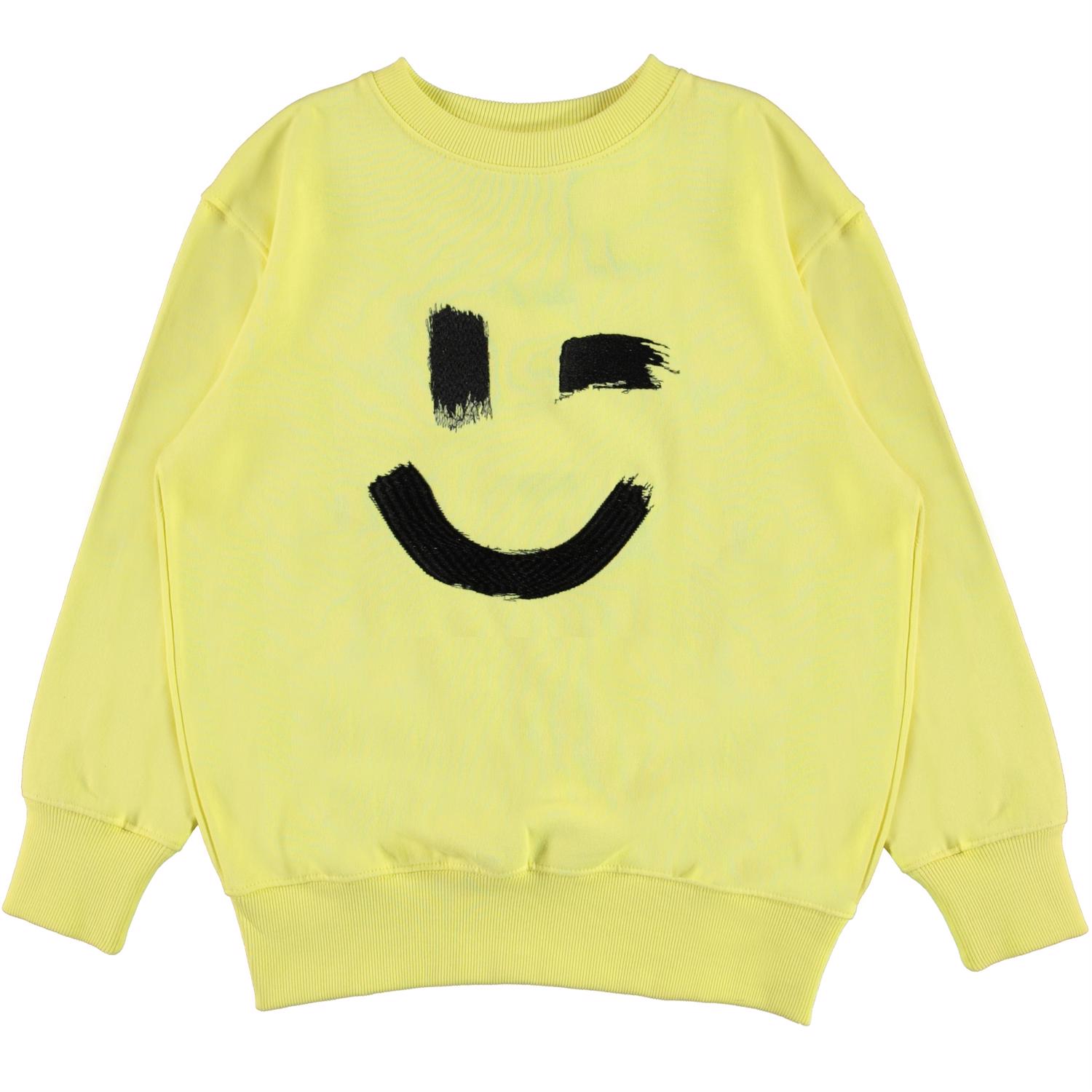 Mattis er en unisex sweatshirt i lysegul med print af smiley på fronten. Blusen har en rund halsudskæring. Kombiner sweatshirten med matchende bukser.