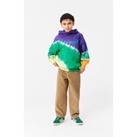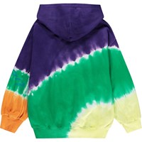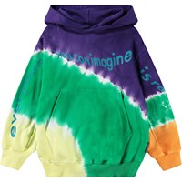Multifarvet tie-dye hoodie i økologisk bomuld med hætte, kængurulomme og ribkant ved håndled og hofte. Trøjen har en oversize pasform og en børstet inderside, der gør den blød og varm at have på. Trøjen har et blåt tekstprint med teksten "Everything you can Imagine is Real" placeret på front og arme. Alt vores tie-dye er håndlavet, hvilket skaber et unikt mønster, der varierer fra style til style.