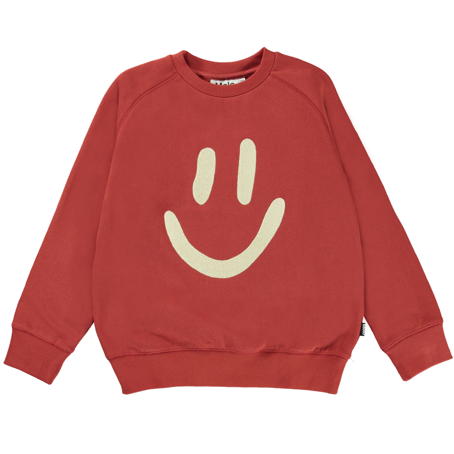 Mike er en rød unisex sweatshirt med print af en smiley på fronten.