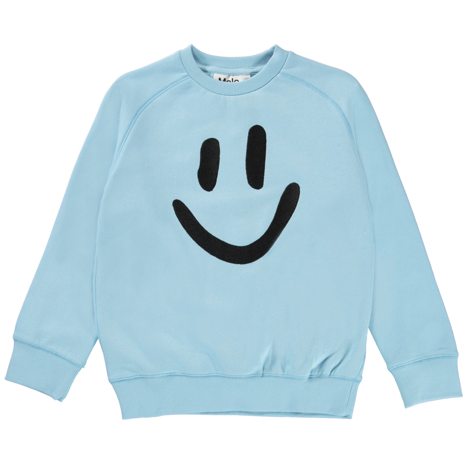 Mike er en blå unisex sweatshirt med print af en smiley på fronten.