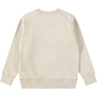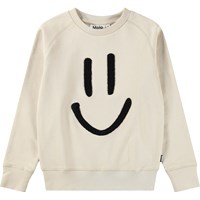 Beige sweatshirt i blød, økologisk bomuld med raglanærmer og ribkanter ved hals, ærmer og bund. Sweatshirten har en normal og afslappende pasform med et sort og blødt smilende broderi på fronten.