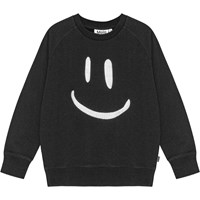 Molo x Plan Børnefonden sort sweatshirt i økologisk bomuld med rund hals, raglanærmer og ribkanter i ærmer og bund. Løs pasform med placeret broderi på fronten af et stort smil i hvidt. Børstet inderside gør den blød og varm at have på. Læs mere om Molo X Plan Børnefonden her.