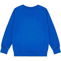 Molo x Plan Børnefonden blå sweatshirt er lavet af økologisk bomuld. Den har en rund hals, raglanærmer og ribkanter i ærmer og bund. Sweatshirten har en løs pasform og et stort smil i sort broderet på fronten. Den har også en børstet inderside, der gør den blød og varm at have på. Læs mere om Molo X Plan Børnefonden her.