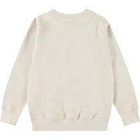 Råhvid sweatshirt i blødt økologisk bomuld med raglanærmer, ribkanter ved hals, ærmer og i bunden af blusen. Sweatshirten har en løs pasform med et grønt og blødt smilende broderi på fronten. Kombiner med matchende shorts og få et komplet sæt.