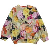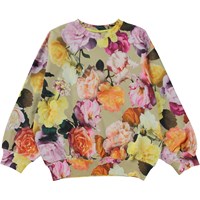 Monti er en unisex sweatshirt i beige med print flotte store blomster. Har elastisk ribkant ved hals, ærmer og bund.