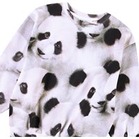 Sweatshirt i blødt økologisk bomuld med ribkanter ved hals, ærmer og i bunden af blusen. Sweatshirten har en løs pasform med et allover pandaprint i sort og hvidt. Kombiner sweatshirten med matchende bukser for et komplet sæt.