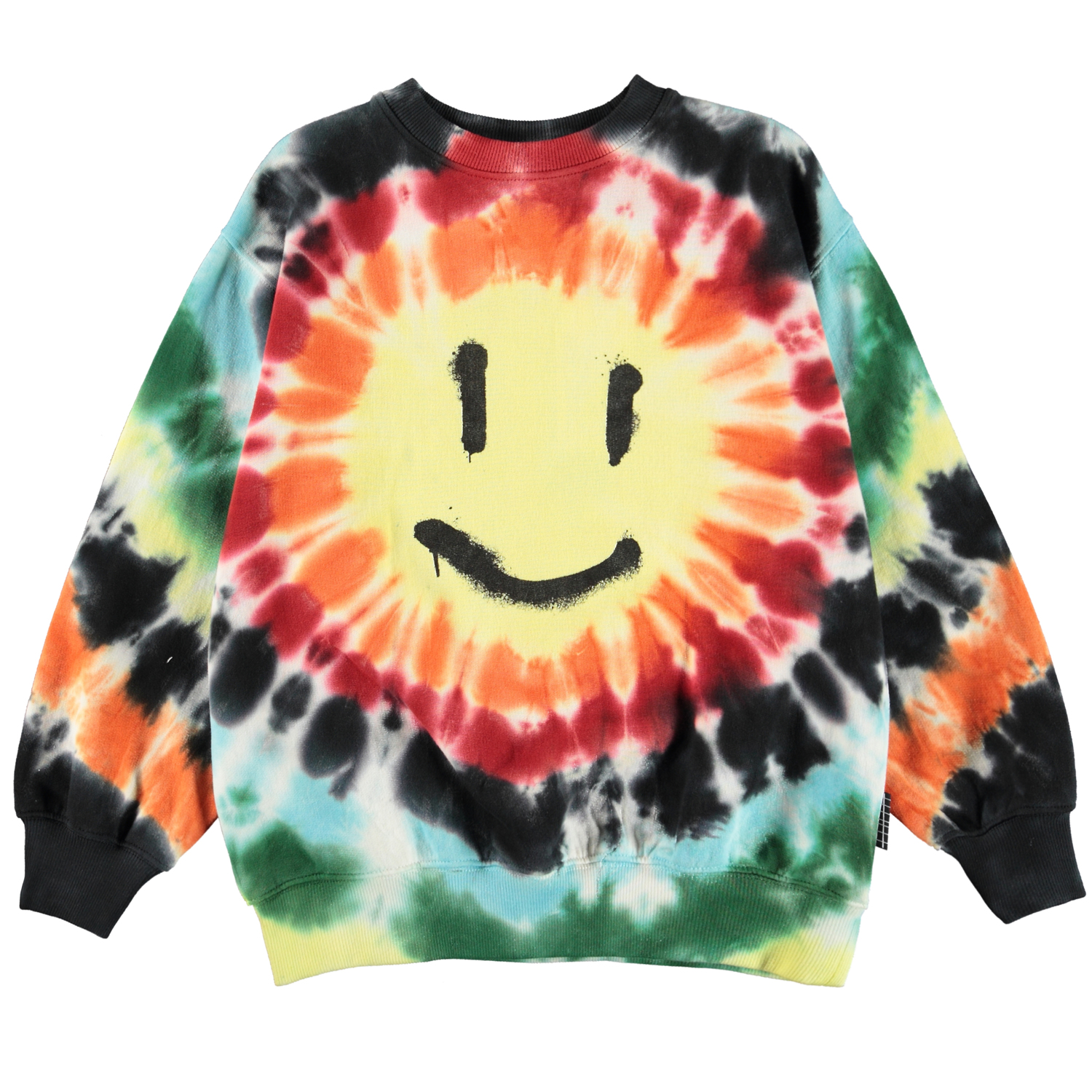 Monti er en unisex sweatshirt med farverigt tie-dye print og smiley på fronten. Kombiner sweatshirten med de matvhende bukser.