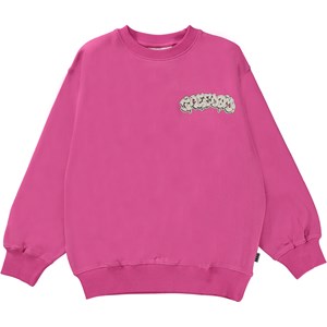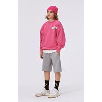 Pink sweatshirt med front broderi. Broderiet sender budskaber om fred of frihed, inspireret af graffitimiljøet. Denne sweatshirt er fremstillet i 100% bomuld, har rund halsudskæring med ribkant, ribkant ved hånd og hofte, samt et loose fit.