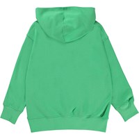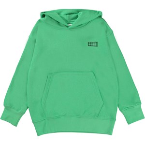 Moz er en grå meleret unisex hættetrøje med kængurulomme på maven, samt print af en smiley på brystet. Moz har rib ved håndled og bund.