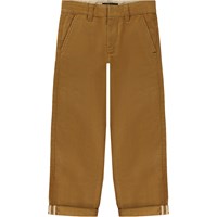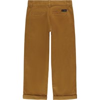 Brændt orange chinos - en cool update af en klassiker. Disse bukser er fremstillet af 100% bomuld, har lommer i siderne, baglommer, et sort logolabel over den ene baglomme, samt et regulært fit. Buksernes livvidde kan justeres med en indvendig justerbar elastik, så de passer perfekt til alle børn. Str.92-134 har trykknap, så bukserne er nemme at få af og på - str.140-176 har regulær jeansknap.