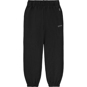 Sorte sweatpants i økologisk bomuld med elastisk talje og indvendigt bindebånd, elastik ved anklerne samt sidelommer. Bukserne har en almindelig pasform og et print med teksten "Freedom" ved lommen.