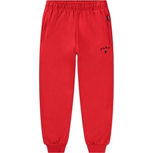 Røde sweatpants i økologisk bomuld med elastik og indvendigt bindebånd i taljen, ribkant ved anklerne, lommer i siden og en baglomme. Bukserne har en almindelig pasform og et placeret print på låret af ordet "Play" i sort. Bukserne har en børstet inderside, hvilket gør dem dejligt bløde og varme at have på.