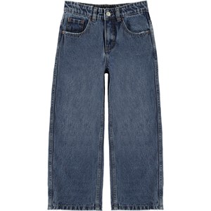 Aiden er Molo's nye jeans i blå, som har en cool og ekstra bred pasform med inspiration hentet fra skater miljøet. Den rummelige pasform og den brede vidde i benene, gør bukserne nemme at bevæge sig i. Buksernes livvidde kan justeres med en indvendig justerbar elastik, så de passer perfekttil alle børn. Aiden er fremstillet i 100% bomuld, hvilket gør at bukserne er ekstra slidstærke. Bemærk, at størrelserne til og med 134 har trykknap og ikke almindelig jeansknap.