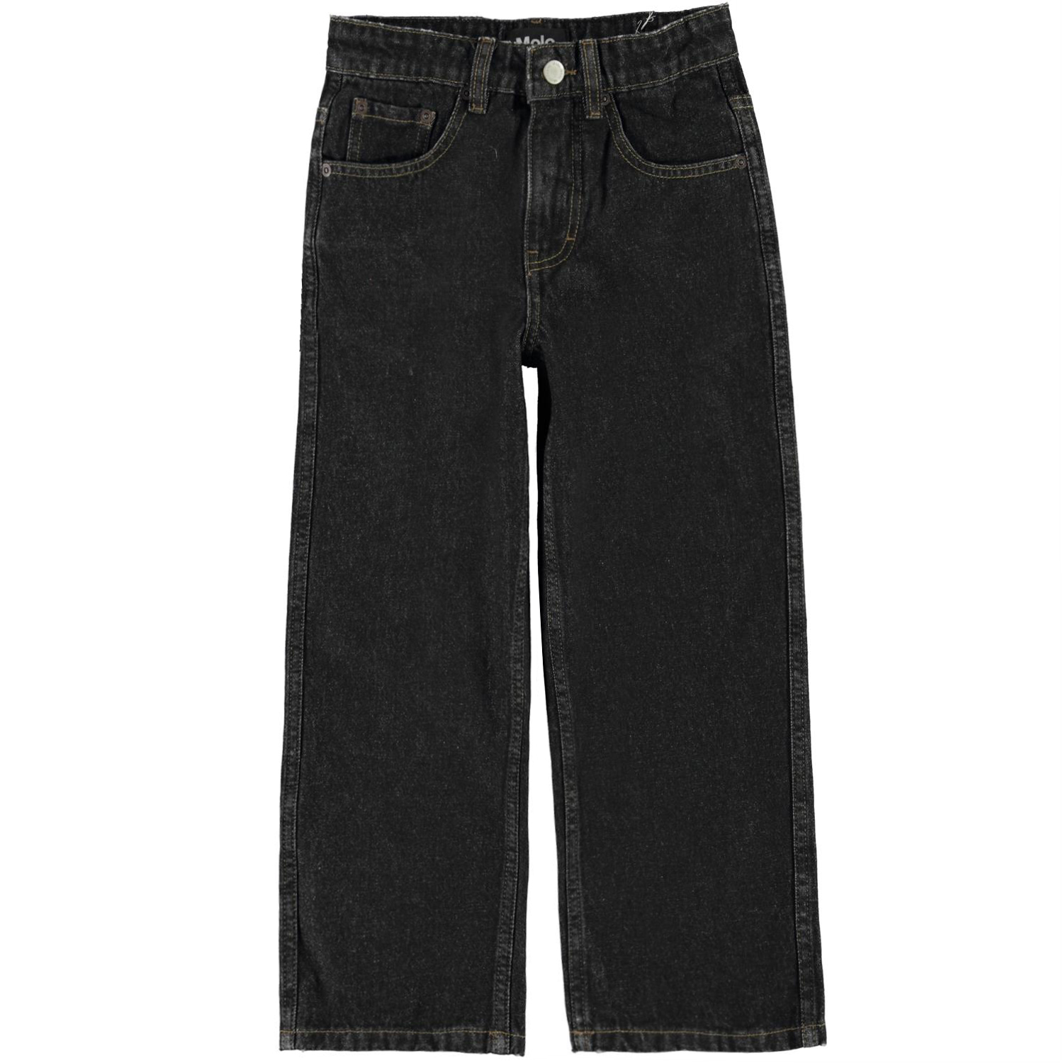 Aiden er Molo's nye jeans i sort, som har en cool og ekstra bred pasform med inspiration hentet fra skater miljøet. Den rummelige pasform og den brede vidde i benene, gør bukserne nemme at bevæge sig i. Buksernes livvidde kan justeres med en indvendig justerbar elastik, så de passer perfekttil alle børn. Aiden er fremstillet i 100% bomuld, hvilket gør at bukserne er ekstra slidstærke. Bemærk, at størrelserne til og med 134 har trykknap og ikke almindelig jeansknap.