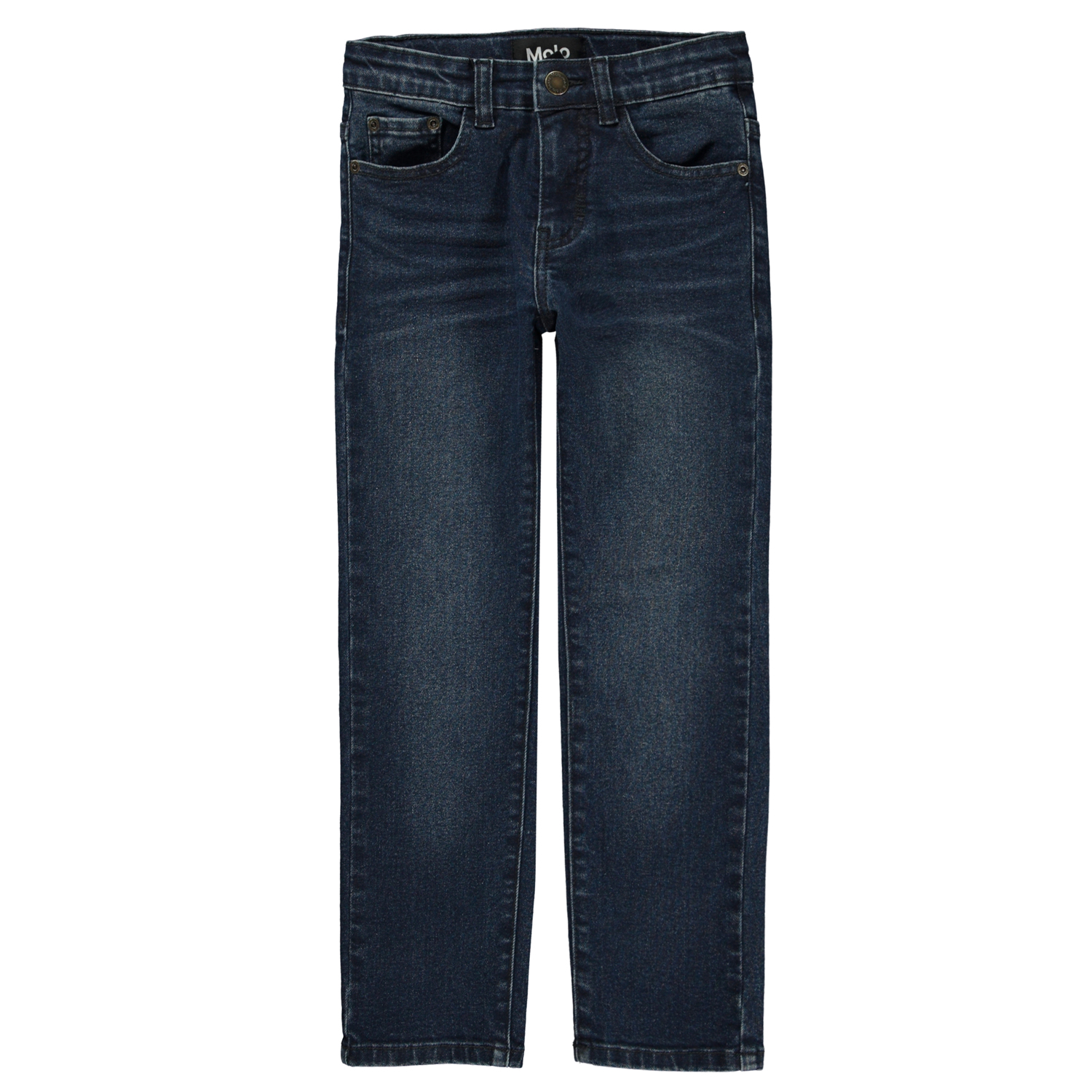 Mørkeblå jeans fremstillet med økologisk bomuld. Disse jeans er med stretch, så de giver mulighed for masser af leg, uden begrænsning. De har lommer i siderne, baglommer, samt et slim fit. Buksernes livvidde kan justeres med en indvendig justerbar elastik, så de passer perfekt til alle børn. Str.92-134 har trykknap, så bukserne er nemme at få af og på - str.140-176 har regulær jeansknap.